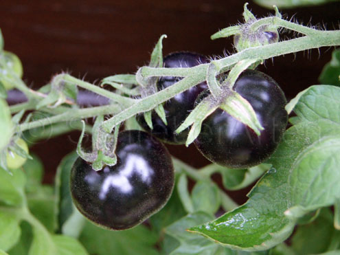 die sonnenzugewandte Seite der Früchte bleibt meist schwarzviolett.