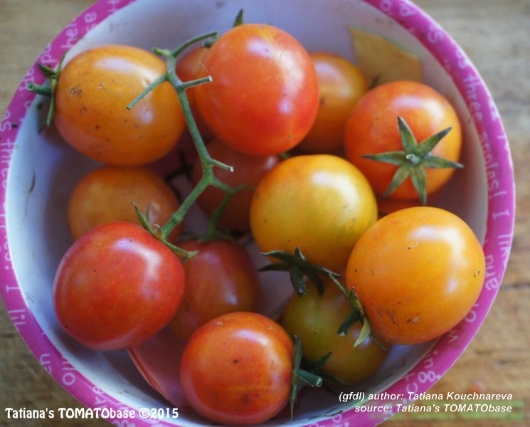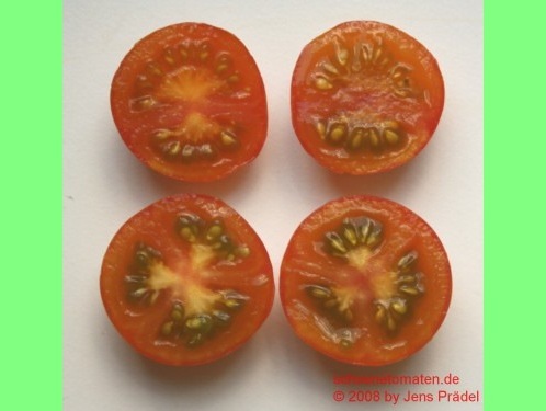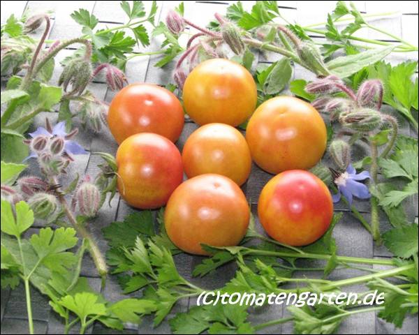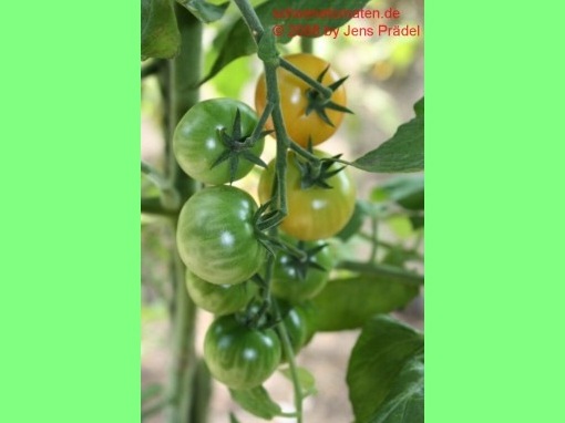 Im Jahrhundert-Tomatenjahr 2014 konnte ich von einem grossen Ertrag nichts bemerken. Er war kleiner als bei meinen anderen sechs Cherry Sorten. Was mich am Anfang etwas irritierte war der Umstand, dass bei allen Stöcken die Blattspitzen der neuen Triebe etwas braun und schrumpelig wurden. Die weitere Blattentwicklung war jedoch nicht aussergewöhnlich. Trotz kleinem Ertrag werde ich sie wieder anpflanzen, weil sie jenseits von süss und sauer einen komplexen, interessanten Geschmack entwickelte.