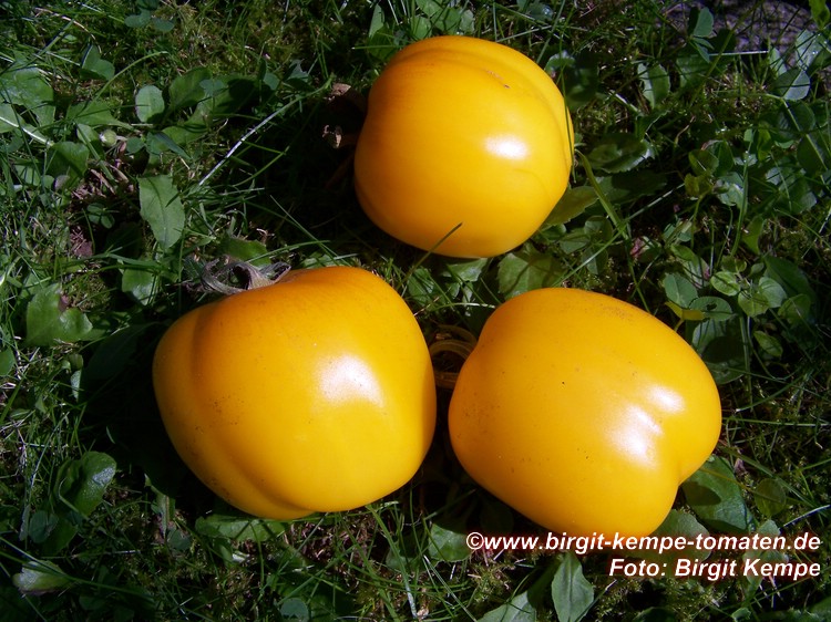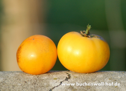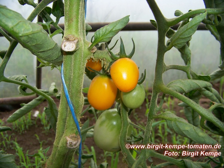 War 2010 sehr ertragreich und robust. Leuchtend gelbe Früchte, tief dunkelgrünes Laub, kräftige Pflanzen, begrenzter Wuchs. Mild-fruchtiger Geschmack, ausgeglichenes Verhältnis zwischen Süße und Säure. Nicht Platzanfällig. Hat lange getragen, bis Ende Oktober (stand geschützt auf einer überdachten Terasse).