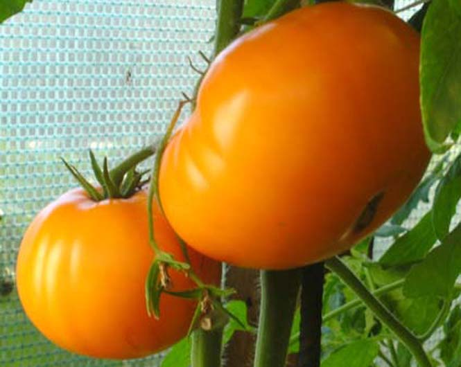 mittelgroße (ø 6 bis 8 cm), breitrunde, wenig gerippte, orangefarbene Früchte