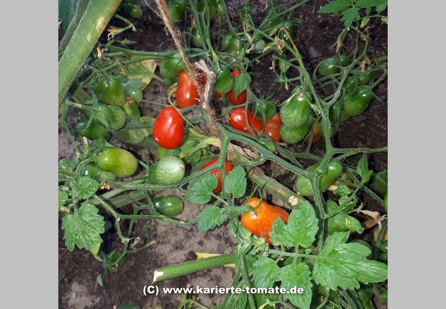 Eine wunderbare Multiflora-Tomate. Die Früchte sind knackig, süß und Lieblinge der Kinder. Die Pflanze wächst schmall und ist nicht stark belaubt. Kozula empfielt sie eintriebig und mit 2, max 3 Rispen zu ziehen. Nicht kälteempfindlich. Auch im Topf habe ich dieses Jahr eine sehr gute Ernte. Früchte sind lagerfähig.