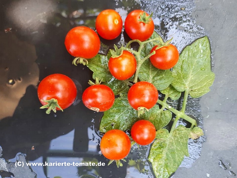 eine rote Mini Tomate für Fensterbank, bzw. Blumentopf ; robust und reicher Blütenflor