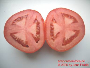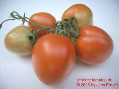 Kasachstan Det - kleine, begrenzt wachsende Pflanze (bis 1,5 m) sehr später Erntebeginn (Anfang September) geringer Ertrag mittelgroße, ovale, im Querschnitt fast dreieckige, hellrote Früchte festes und dickwandiges Fruchtfleisch, nicht sehr saftig, dadurch gut lagerbar nicht sehr geschmackvoll (Quelle: www.schoenetomaten.de)