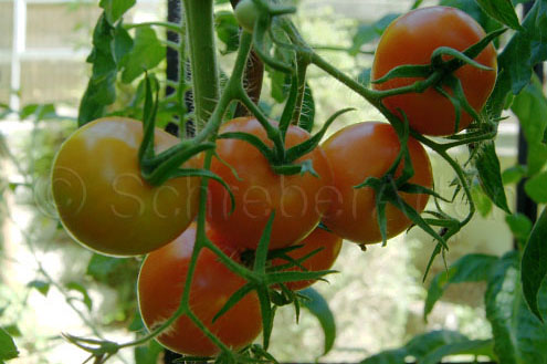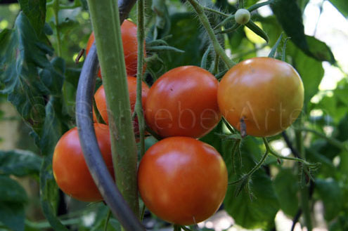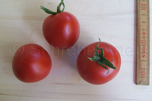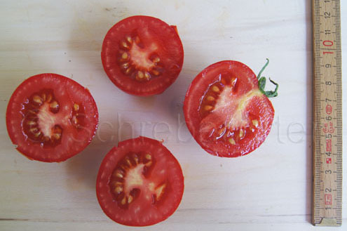 Kleopatra - große Pflanze (bis 2,5 m) sehr früher Erntebeginn (Ende Juli) sehr ertragreich große (ø 6 cm), 60 bis 80 g schwere, runde, rote Früchte saftig und schmackhaft (Quelle: www.schoenetomaten.de)
