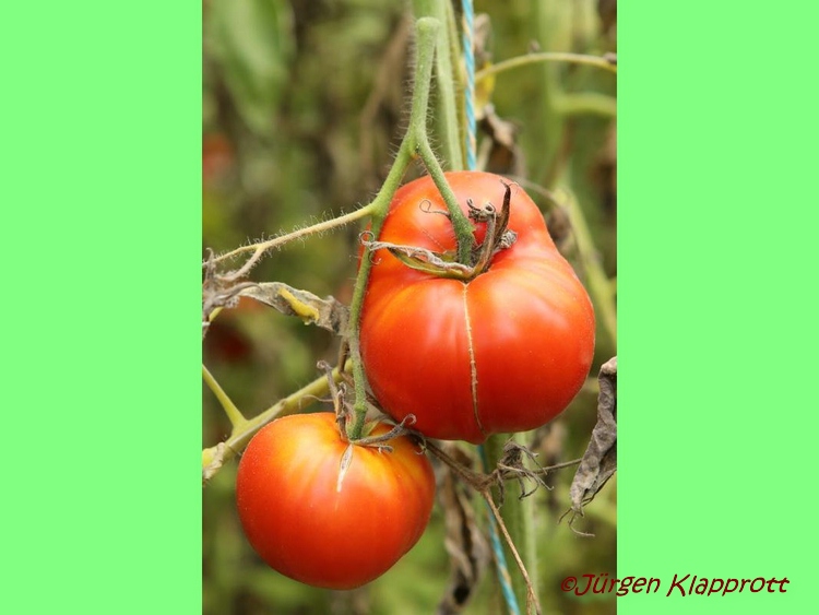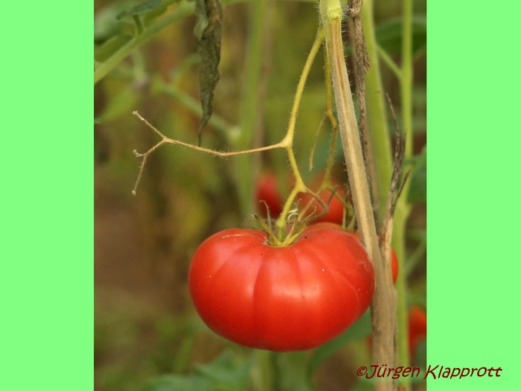 Auch im Freiland hatte ich eine Pflanze ,dort Ertag geringer und Früchte kleiner max. 250g .Kann am Kübelanbau gelegen haben.Gute Sorte!Würde mir aber bei vergleichbaren Sorten Berner Rose vorziehen .
