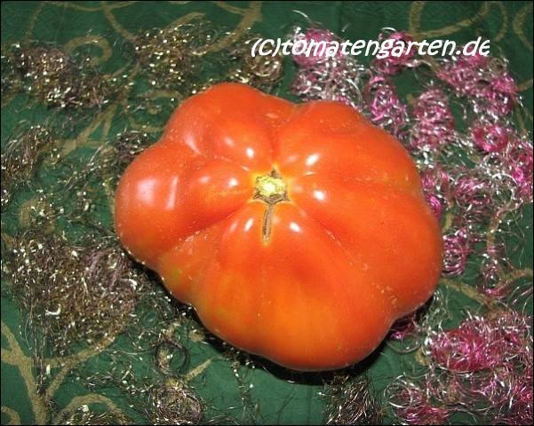 mittelgroße bis große (ø 6 bis 9 cm), hochrunde (meist 6 cm hoch), beutelförmige, aber auch breitrunde, meist stark gerippte, rote Früchte