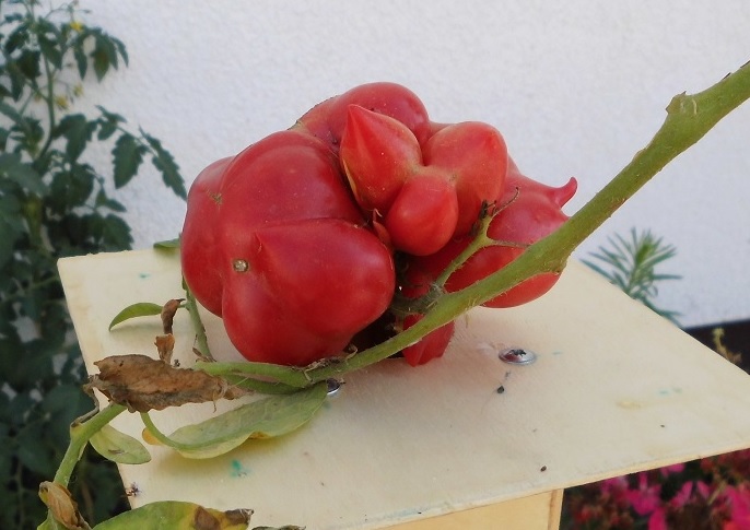 In diesem Jahr waren die Früchte bis zu 1kg groß, hatten sehr unregelmäßige Form und schmeckten sehr gut.
