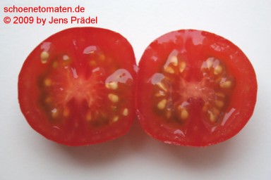 Massenträger, produziert jede Menge süße, saftige Früchte, mit kräftigem Tomatenaroma und perfekt abgestimmter Säure . Im Anbau 2019 im überdachten Freiland (erste reife Frucht 20.08.) deutlich besser als im GWH. Pflanze verträgt einen zweitriebigen Anbau gut. Superlecker!