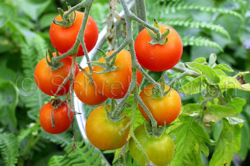 Mexikanische Honigtomate – rote runde mittelgrosse (ca. 3-4 cm) saftige Früchte mit süsslichem Geschmack: Früchte bleiben lange Zeit fest, widerstandsfähig gegen Trockenheit. (Quelle: www.d-landsmann.de / Mit freundlicher Genehmigung des Autors)