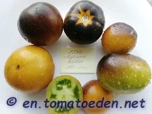 eine wohlschmeckende Tom Wagner Züchtung, hervorgegangen aus einer P20 Kreuzung; eine der besten anthocyanhaltigen Cocktailtomaten