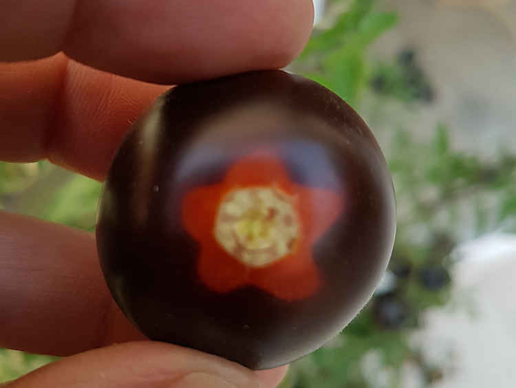 Herkunft: Paradeiserprojekt der Arche Noah, Kreuzung aus Aroma Cocktail und Dancing with Smurfs