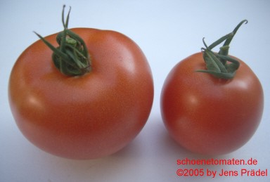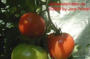 Magnum - große Pflanze (über 2 m) mit kräftigem Wuchs sehr später Erntebeginn (Anfang September) großer Ertrag sehr große (150 bis 300 g), überwiegend runde, glatte, hellrote Früchte köstlicher saftiger Geschmack (Quelle: www.schoenetomaten.de)