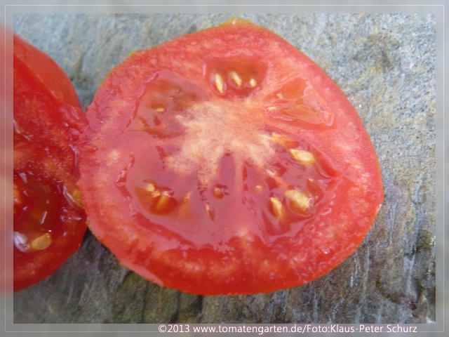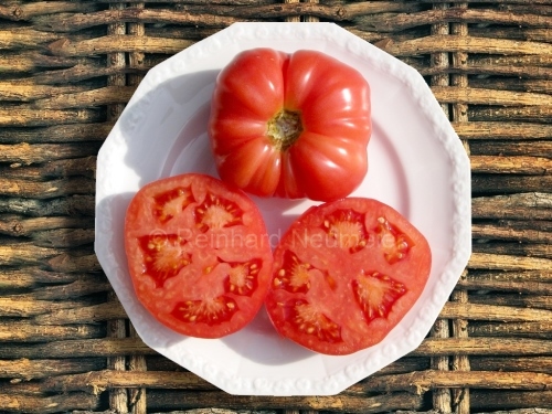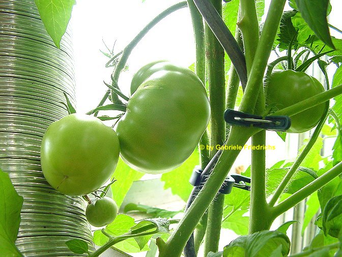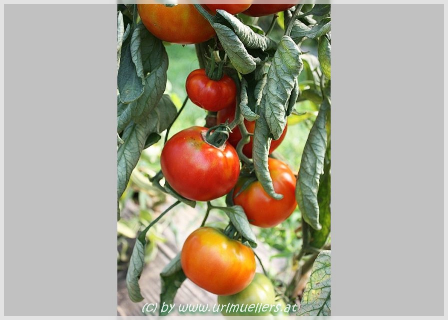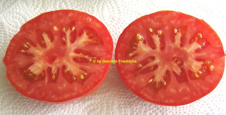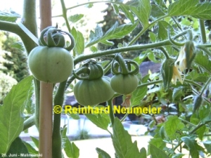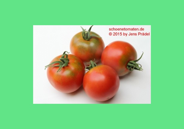 Malinowski - sehr große Pflanze (bis 3 m) extrem später Erntebeginn (Mitte September) mittlerer Ertrag große, runde, rote Früchte sehr guter Geschmack, saftig (Quelle: www.schoenetomaten.de)