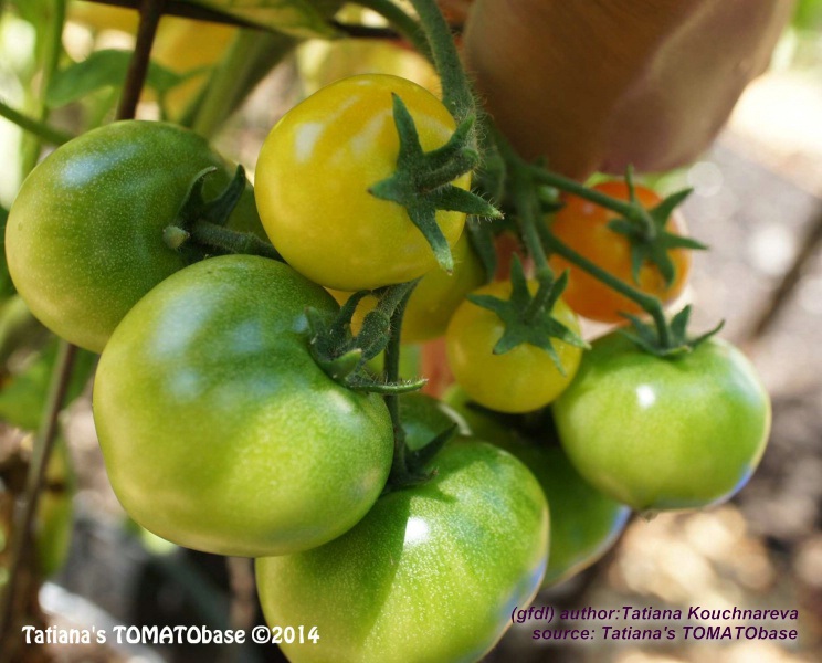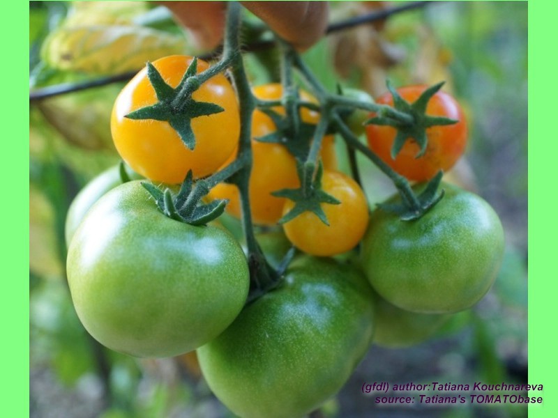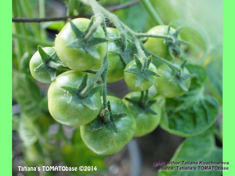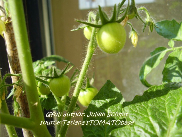 Buschtomate, die sich sehr gut für Töpfe eignet, widerstandsfähig. Hat bei mir auch sehr gut die Kälte um 3 Grad überstanden. Wächst straff aufrecht.