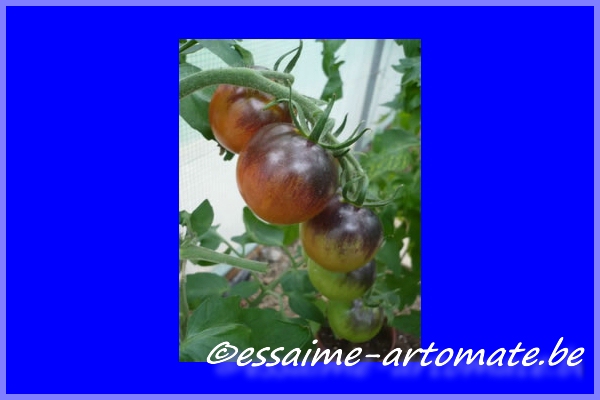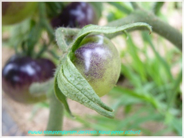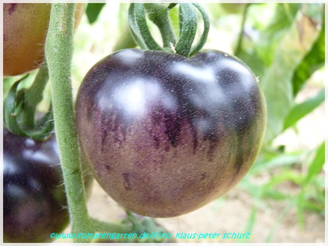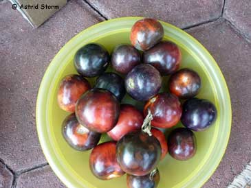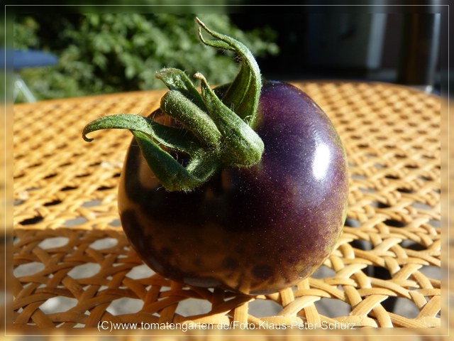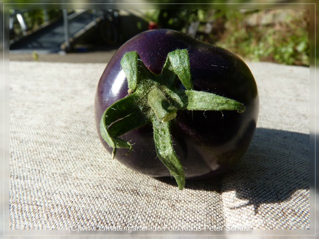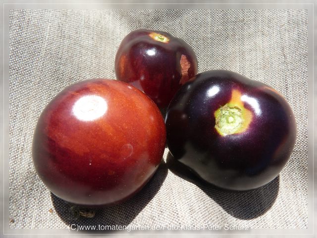 unreif: schwarzviolett, reif: orangerot, wobei die der Sonne zugewandte Seite schwarzbraunviolett ist.