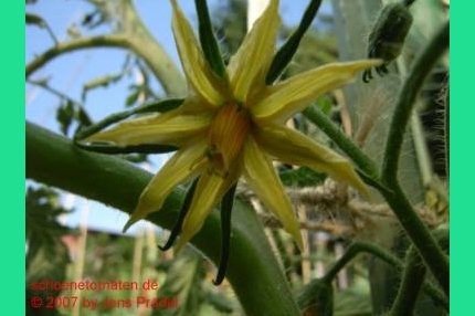 Habe diese Sorte 2009 in mehreren Exemplaren angebaut. Bilder und Beschreibung stimmen mit Tomatenatlass-Einträgen vom 3.9.09 überein, nur bei mir waren die Früchte nicht vollfleischig: sie hatten Hohlräume innen. Große Pflanzen mit feinzerteiltem und auffallend hängendem Laub. Die Sorte scheint in besonderem Maß auf gute Wasserversorgung angewiesen zu sein. Geschmack: aromareich, was besonderes. Guter Ertrag. Neigung zur Spitzenschwärze bei den kleineren Früchten. Fruchtformen recht ungleich.