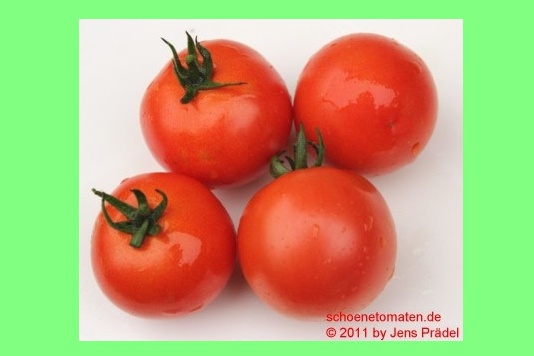 mittelgroße (ø 5 cm), 50 bis 70 g schwere, runde, glatte, rote Früchte