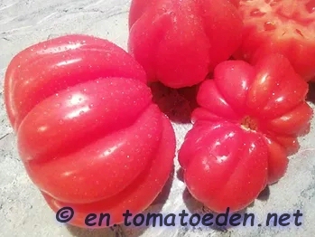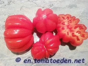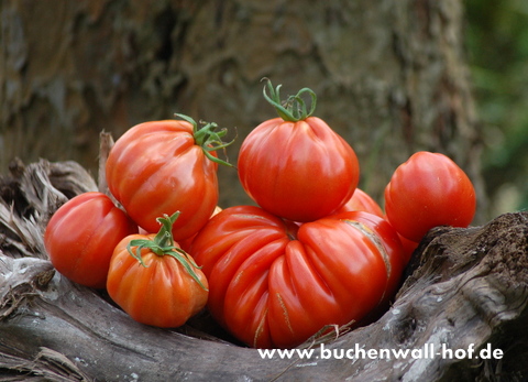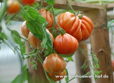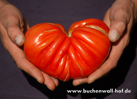 Eine eher seltene und viel zu unbekannte Sorte ist die 'Pitanga'. Ihr Name leitet sich von der Surinamkirsche ab, deren Früchte eine ähnliche Form wie die beutelförmigen Tomaten haben. Im Anbau zeigt sich 'Pitanga' ertragreich und eher spät, wobei sie viele fleischige, große Früchte zaubert. Die größte bei uns geerntete Frucht wog 598 Gramm.