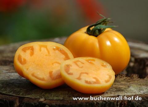 Es gibt so viele tolle Tomaten, die 'Russian Persimon' ist eine davon und definitiv eine unserer neuen Lieblingsschätze im Garten. Allein der Anblick der großen, orangefarbenen Früchte lässt einem das Wasser im Mund zusammenlaufen. Innen sind die Früchte vollfleischig, mit schmelzendem Fruchtfleich. Das Aroma ist mild und süßlich.