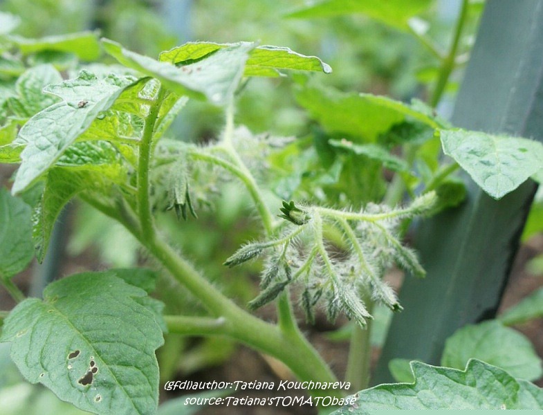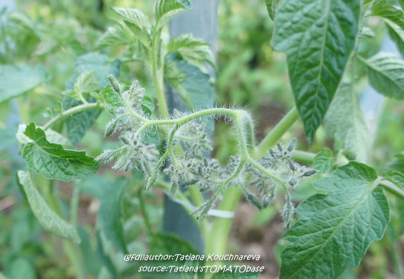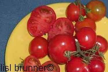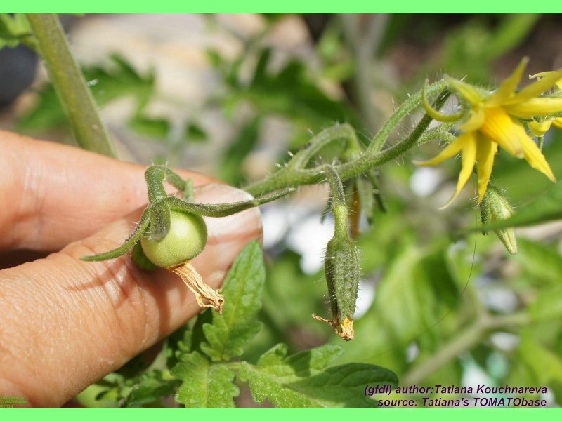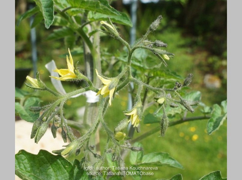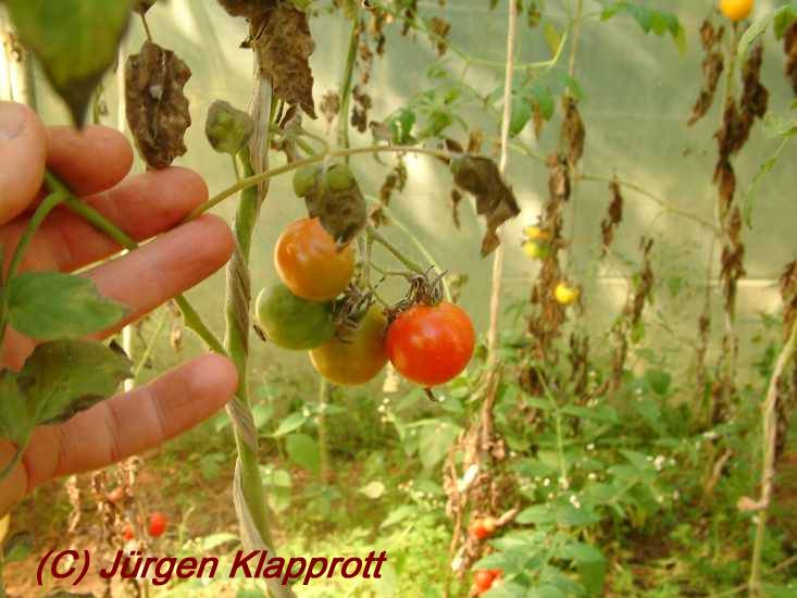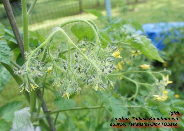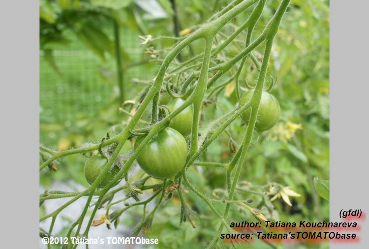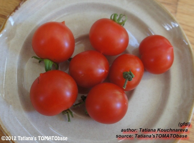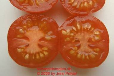 Riesentraube - kleine Pflanze (bis 1,5 m) später Erntebeginn (Ende August) mäßiger Ertrag kleine (ca. 20 g), runde, rote Früchte mit kleiner Spitze Die vielen Blüten in den wirklich riesigen und ungleichmäßigen Rispen (Trauben) verheißen einiges. Leider bilden sich bei weitem nicht so viele Früchte heraus. kräftiger Geschmack, nicht sehr süß, saftig (Quelle: www.schoenetomaten.de)