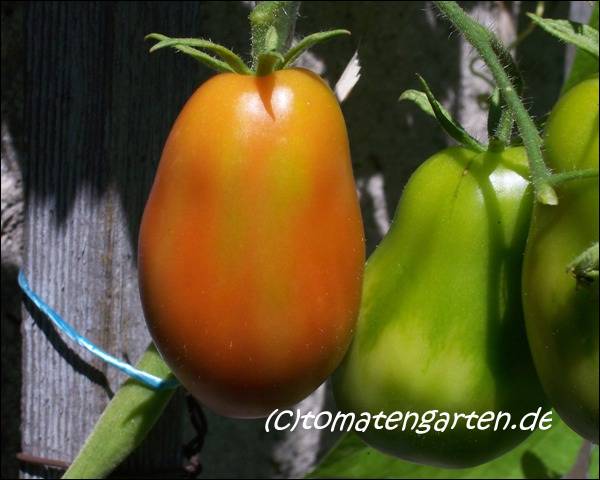 Riesen(baum) -Tomate - wird bis zu 5 m hoch; rote große birnenähnliche Früchte mit einem milden saftigen Geschmack. (Quelle: www.d-landsmann.de / Mit freundlicher Genehmigung des Autors)