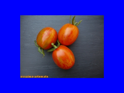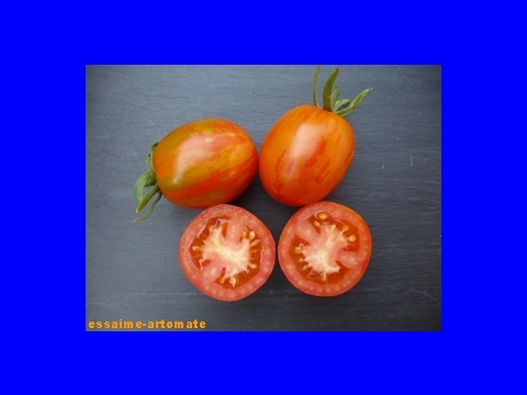 mittelgroße (ø ca. 5,5 cm, 7 cm hoch), hochrunde, eiförmige oder zapfenförmige, unregelmäßig orange-rot gestreifte, wunderschöne Früchte mit meist einer kleinen, stumpfen Spitze