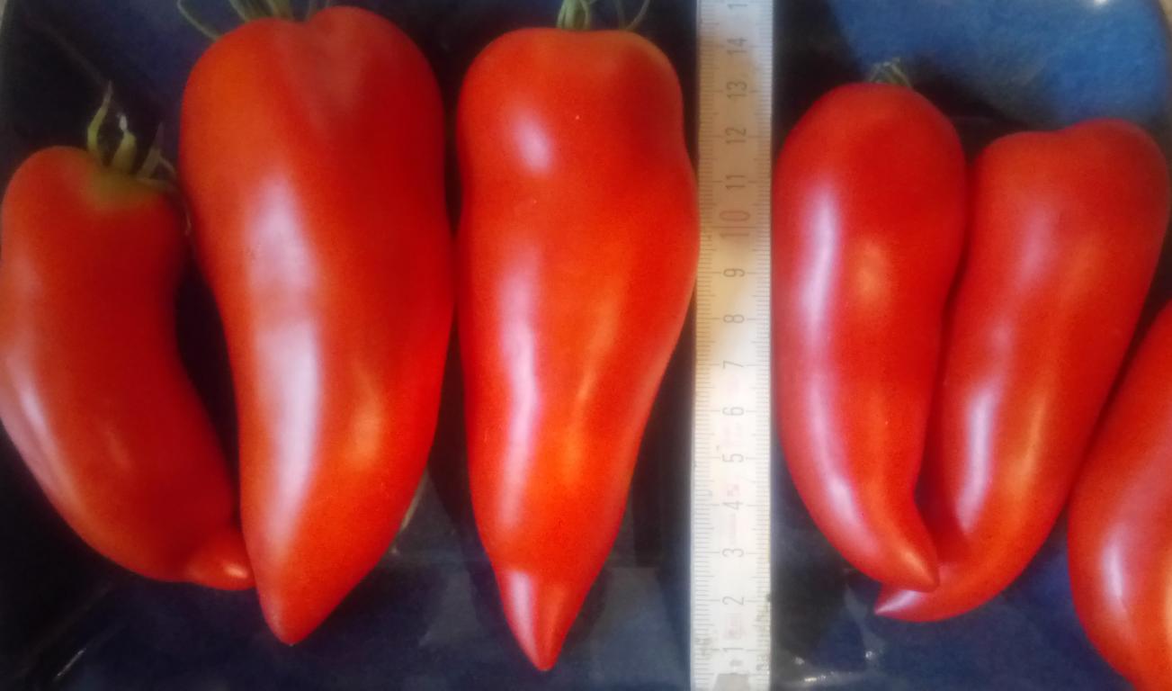 Eine meiner besten Sorten, die ich schon seit Jahren anbaue, Robuste Pflanzen, sehr ertragreich. Eine Allroundtomate für jeden Verwendungszweck. Vorzüglicher Geschmack, süss und saftig, vollfleischig mit wenig Kernen, daher auch sehr gut zur Soßenherstellung geeignet. Und nicht zuletzt ein Blickfang in jeden Garten aufgrund der Außergewöhnlichen Form wie eine Spitzpaprika, daher auch der Name.