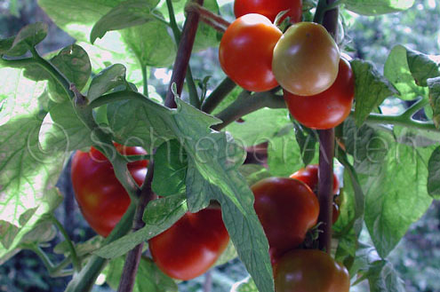 kleine, kompakte (0,8 bis 1 m) Pflanze, Buschtomate