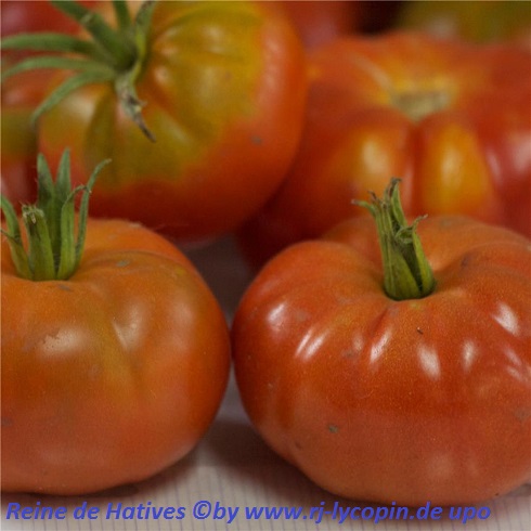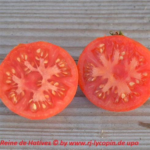 Eine Varietät, erwähnt 1897 in einer landwirtschaftlichen Veröffentlichung mit folgendem Kommentar, der sich einer Veröffentlichung oder besser der kurzen Beschreibung des Samen-/Kornlieferanten Dany Calixte aus Althen-les-Paludes in Vaucluse anschließt: Die Königin der Früh(tomaten?) überzeugt (zeigt sich, verblüfft) mit einer unglaublichen Frühreife, darüber hinaus Anzahl (Vielfalt?), Formen- und Farb-Fülle und Güte (Beschaffenheit, Qualität) ihrer Früchte, die ihre bewunderswerte Ausgangs-(Ursprungs-?)Qualität unterstützen/ergänzen.