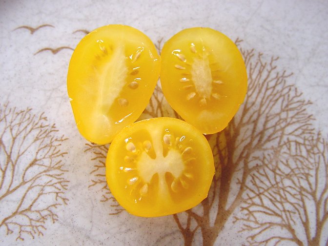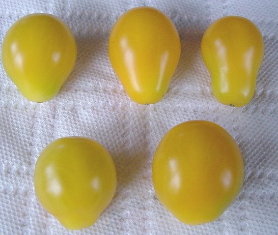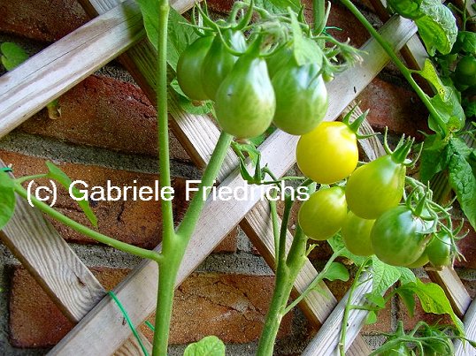 Anbau 2016 im Topf, vor Regen geschützter Standort im Freiland. Ernte pro Pflanze: 660 g = 81 Früchte = ca. 8 g pro Frucht, schwerste Frucht wog 12 g (im November unreife Früchte nicht mitgezählt). Meiner Meinung nach geschmacklich besser als die 2015 angebaute Yellow Pearshaped.