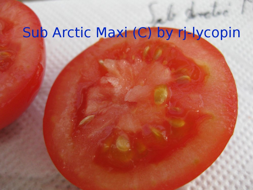 Sub Arctic Maxi - rote runde mittelgrosse (ca. 3-5 cm) saftige Früchte mit leicht säuerlichem Geschmack; Pflanze wird bis 70 cm hoch; vorrangig für raues Klima; Anbau im Schattenen (Halbschatten); bei zu großer Hitze sterben die Pflanzen ab; Reife ab Ende Juli; guter Ertrag. (Quelle: www.d-landsmann.de / Mit freundlicher Genehmigung des Autors)