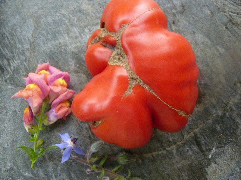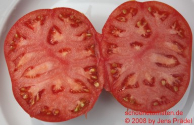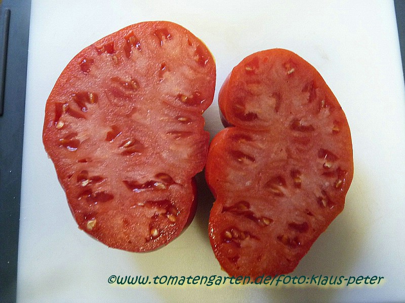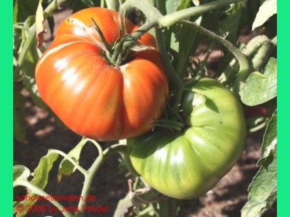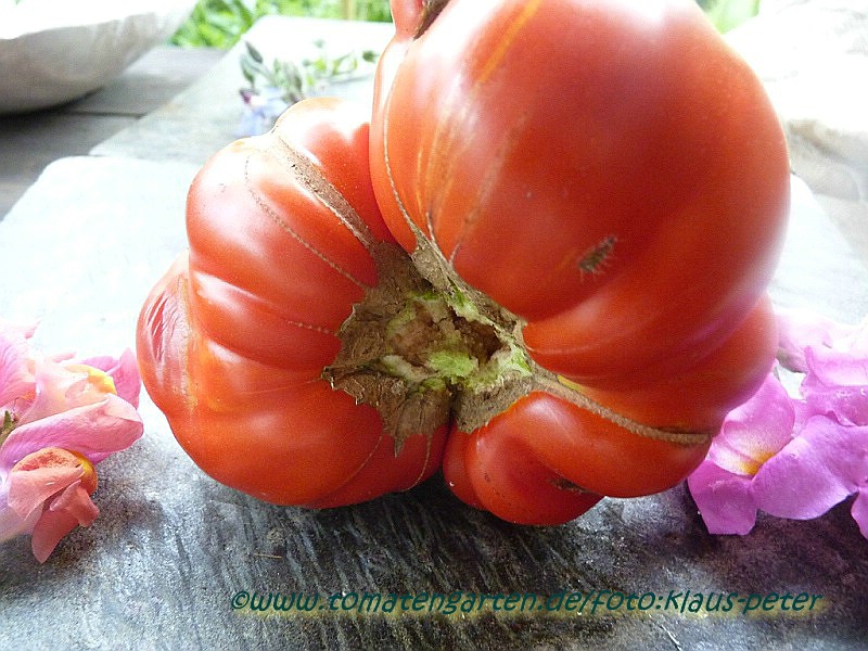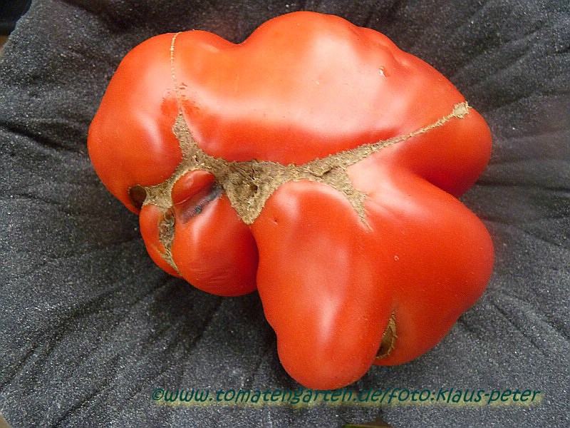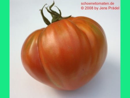 große, sowohl breitrunde als auch herzförmige oder unförmige, meist glatte, manchmal etwas gekerbte, orangerote Früchte