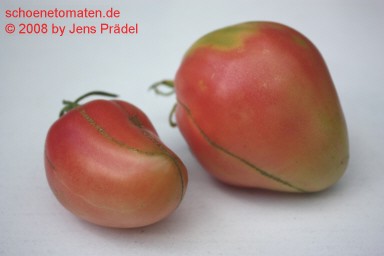 große, herzförmige, rote Früchte