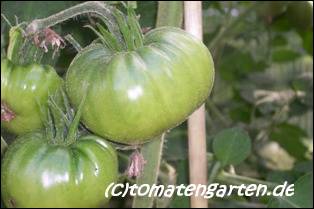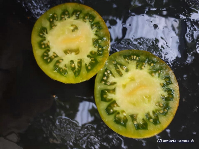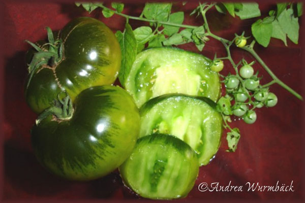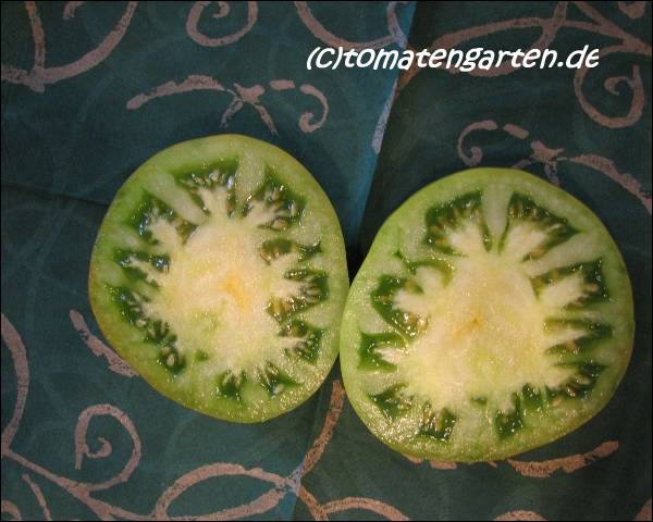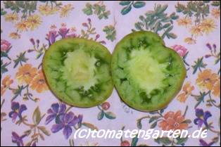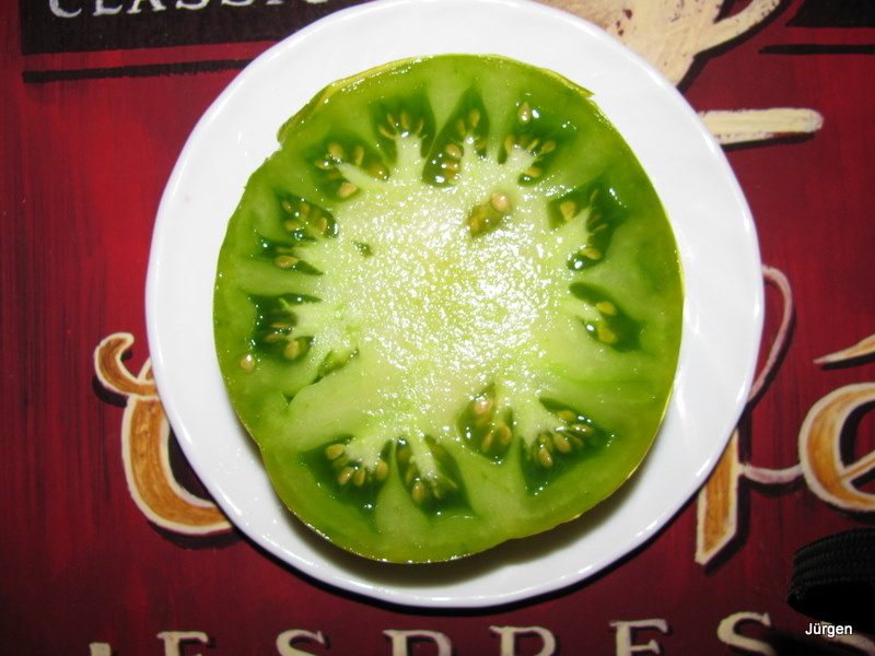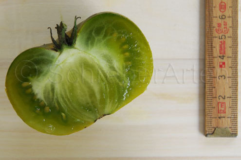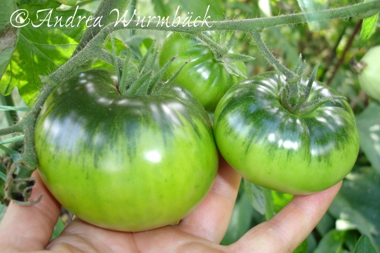 Zudem ungemein aromatisch-süß-saftig. Meine Empfehlung für eine grüne Fleischtomate.