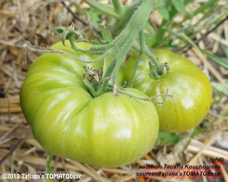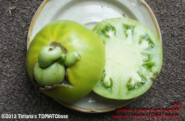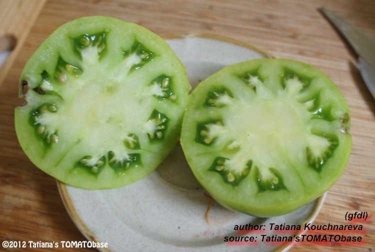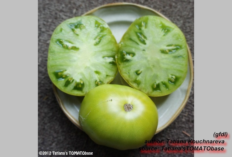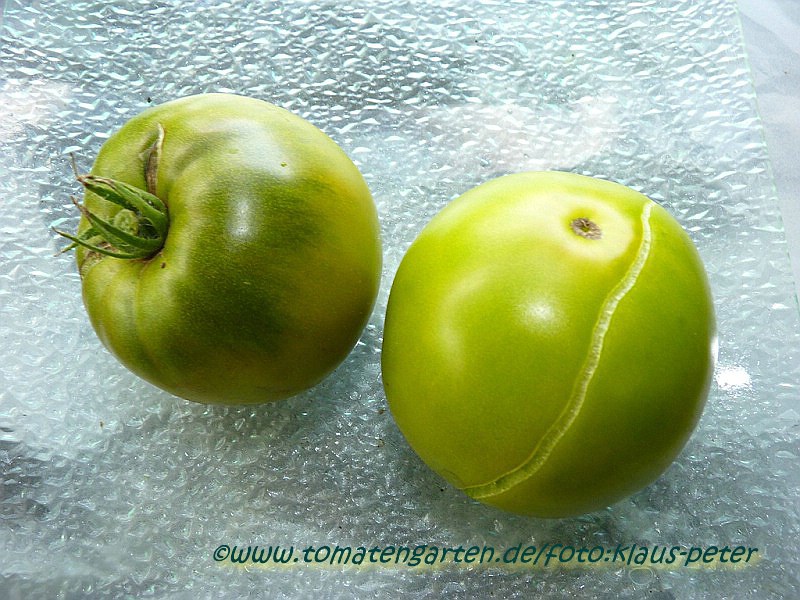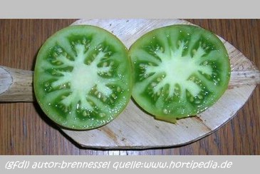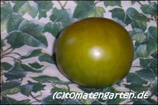 Vielleicht eine der besten grünen Fleischtomaten überhaupt, kommt offenbar mit jeder Pflanzsituation gut zurecht, ob Topf, Gewächshaus, geschütztes Freiland oder völlig ungeschützt (allerdings aufgebunden). Zuverlässig, sehr früh (Anfang Juli im Weinbaugebiet), gleichmäßig um 180g schwankende, gerippte Früchte.