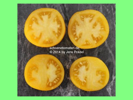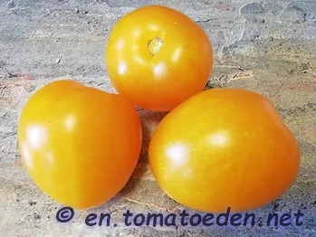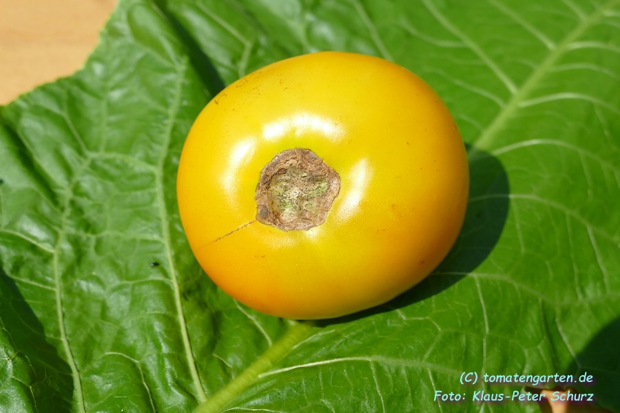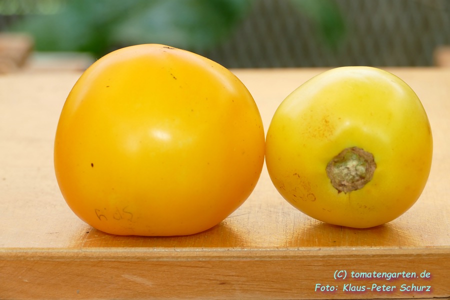 große (ø 6 bis 8 cm), 70 bis 120 g schwere, leicht breitrunde, kräftig gelbe Früchte