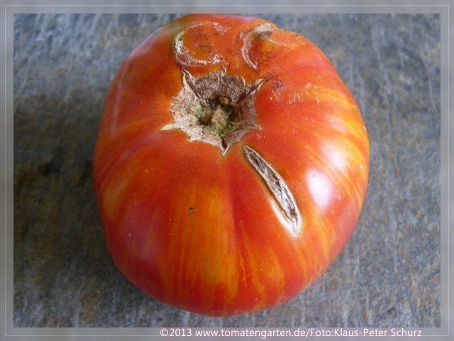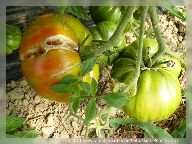 Viele Längsrisse in den Früchten, die aber schnell vernarben.