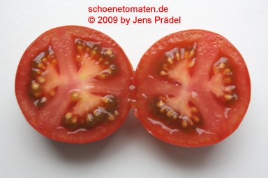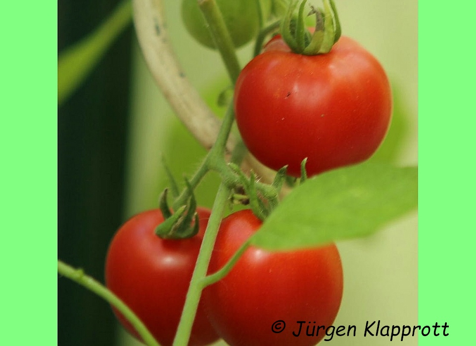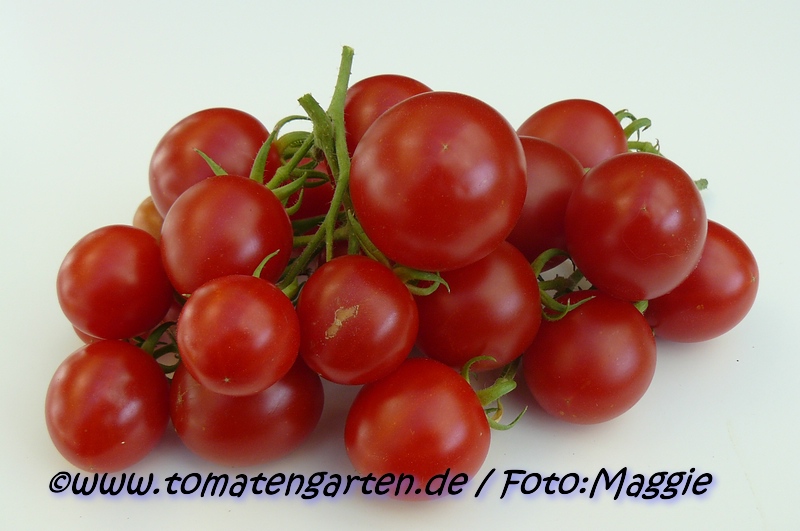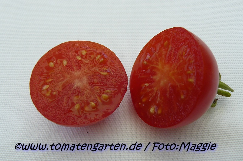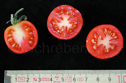 Stupice - mittelgrosse (ca. 4-5 cm) rote runde Früchte mit süssaromatischem Geschmack; sehr frühe Reife (Ende Juni); hoher Ertrag; nicht platzanfällig. (Quelle: www.d-landsmann.de / Mit freundlicher Genehmigung des Autors