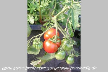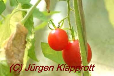 Stupice - große Pflanze (über 2 m) später Erntebeginn (Mitte August) sehr geringer Ertrag (starker Braunfäulebefall) kleine (30 bis 60 g), runde, teilweise leicht gerippte, hellrote Früchte normaler Tomatengeschmack (Quelle: www.schoenetomaten.de)