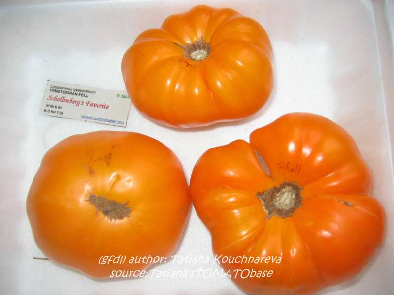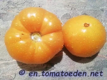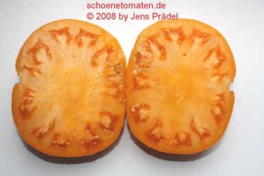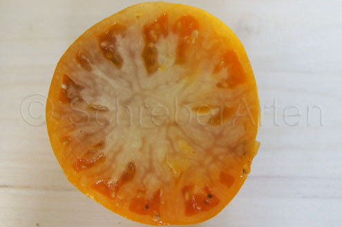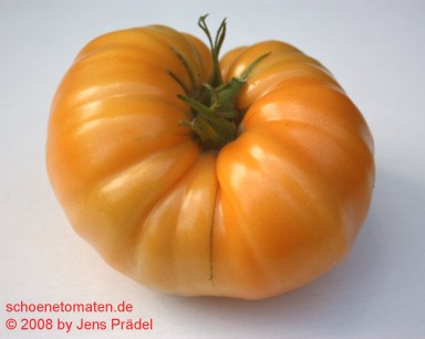riesige, breitrunde, kaum gerippte, orangefarbene Früchte