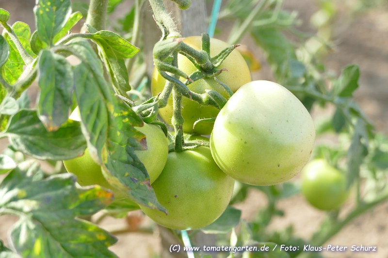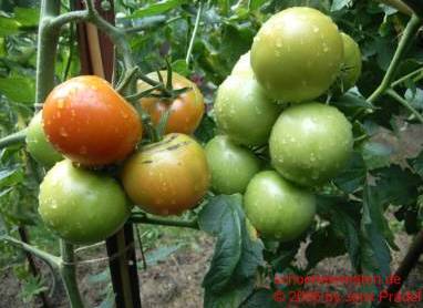 Stonor's Exhibition - mittelgroße (bis 2 m) Pflanze später Erntebeginn (Ende August) durchschnittlicher Ertrag 70 bis 100 g schwere, runde, rote Früchte, die nicht platzfest sind gewöhnlicher Geschmack (Quelle: www.schoenetomaten.de)