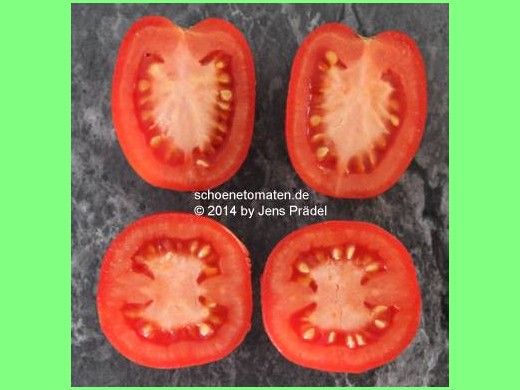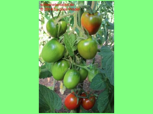 2017 und 2018 je 2 Pflanzen in einem Kübel ohne Regenschutz an der wärmsten Stelle meines Grundstücks angebaut .2017 3,00m je 4 Blütenstände ,2018 3,70m je 6 Blütenstände .Gesunde Sorte ,guter Ertrag ,fest ,geschmacklich gut ,etwas weniger Süsse als Hartzfeuer,die ovalen Früchte neigen oben zu einem grünen Rand .Früher Erntebeginn ,lange Erntezeit ,unempfindlich ,zu empfehlen !