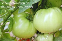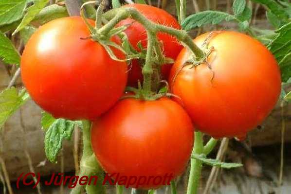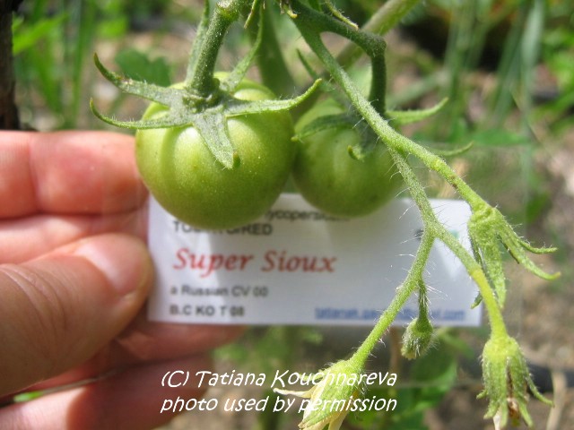Super Sioux - mittelgroße Pflanze (bis 1,5 m) später Erntebeginn (Mitte August) reich tragend große, runde, rote Früchte guter Geschmack, manche Früchte etwas mehlig (Quelle: www.schoenetomaten.de)