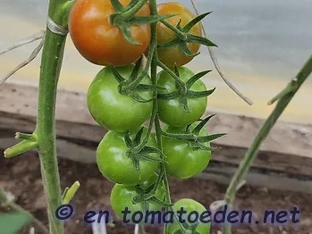 Sehr aromatische kräftigrote Datteltomate. Lange Trauben. Schöne feste Schale, daher platzfest.