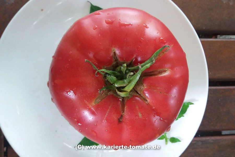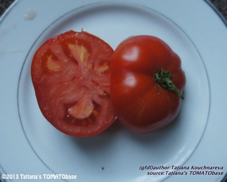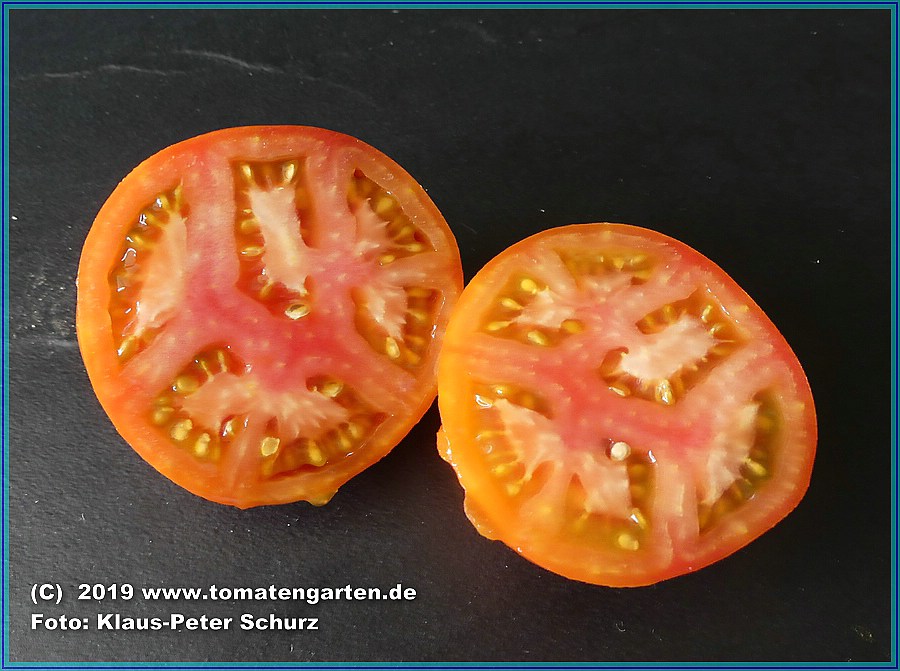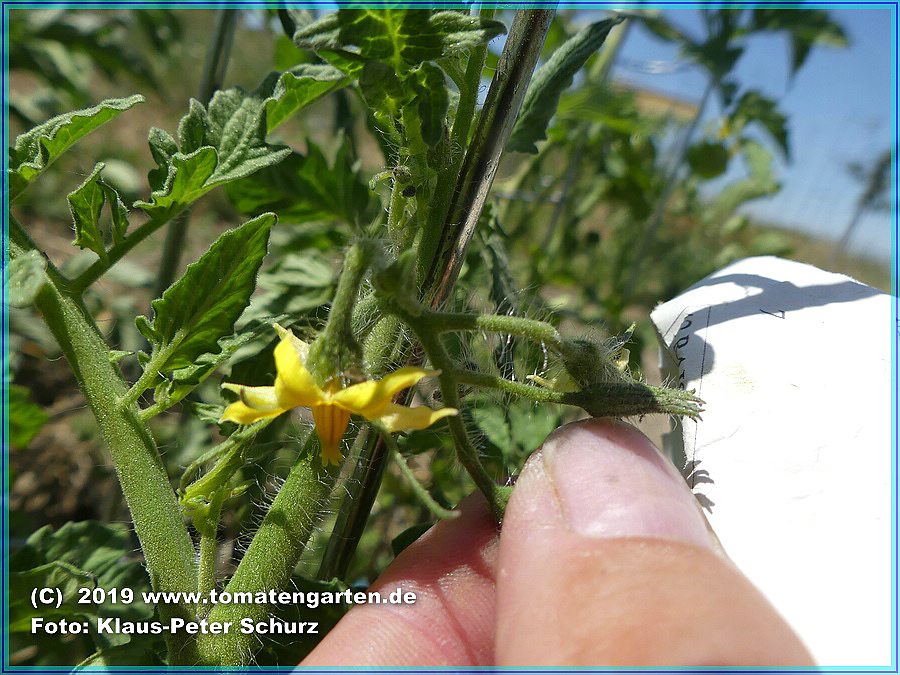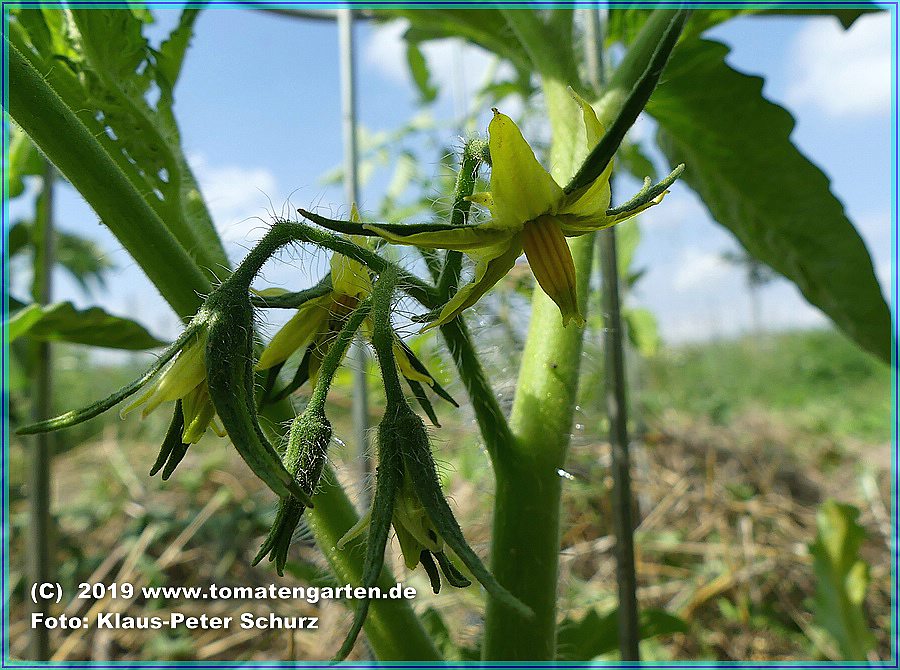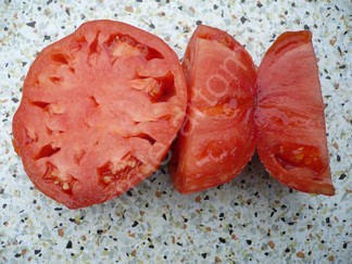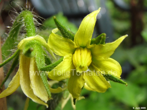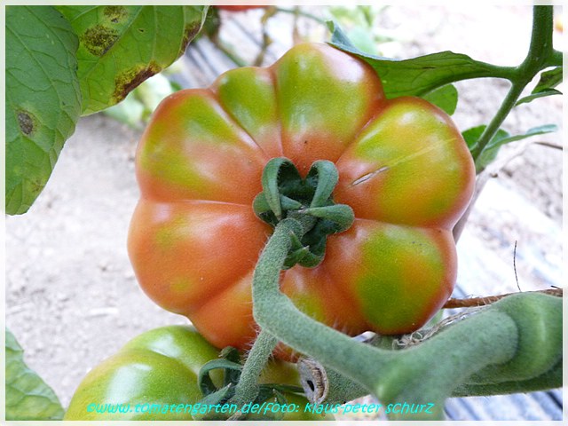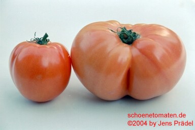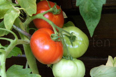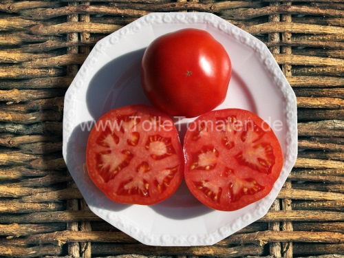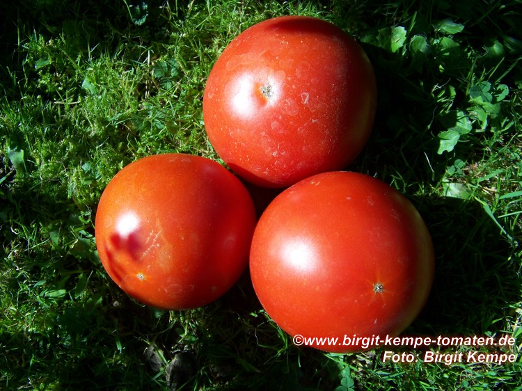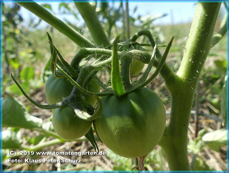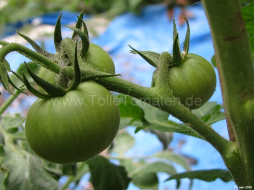 Tres Cantos - große Pflanze (bis 2 m) extrem später Erntebeginn (Ende September) dadurch geringer Ertrag teilweise große (bis 250 g), runde, hellrote Früchte guter Geschmack, "tomatig" (Quelle: www.schoenetomaten.de)