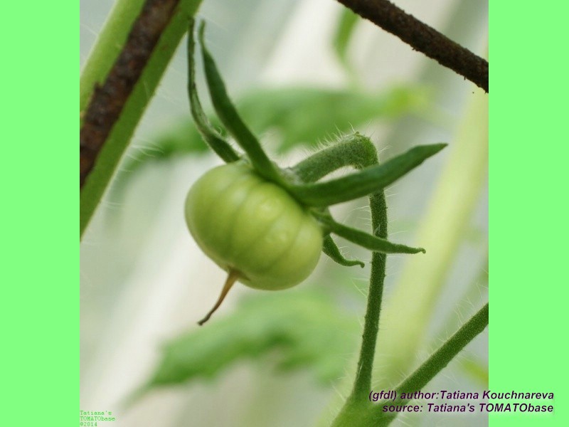 Tee Mo Or - sehr später Erntebeginn (Anfang September) geringer Ertrag sehr große (200 bis 400 g), runde, nahezu glatte, rote Früchte mit grünlichem Kragen größte geerntete Frucht: 394 g kräftiger Tomatengeschmack (Quelle: www.schoenetomaten.de)