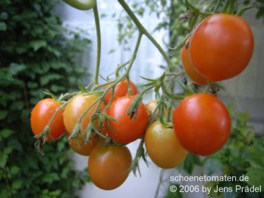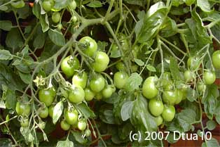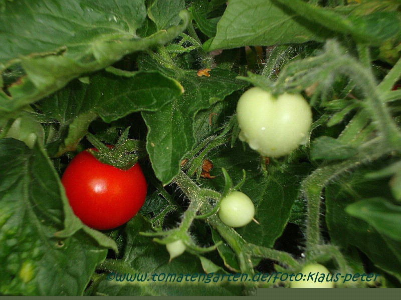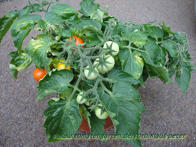 Tumbling Tom Red - für Balkonkästen oder Ampelbepflanzungen, mehrtriebig wachsen lassen! früher Erntebeginn (Anfang August) sehr geringer Ertrag kleine (ø 3 cm und 15 bis 20 g), runde bis leicht ovale, rote Früchte ziemlich geschmackslos Nur als Zierpflanze zu empfehlen! (Quelle: www.schoenetomaten.de)