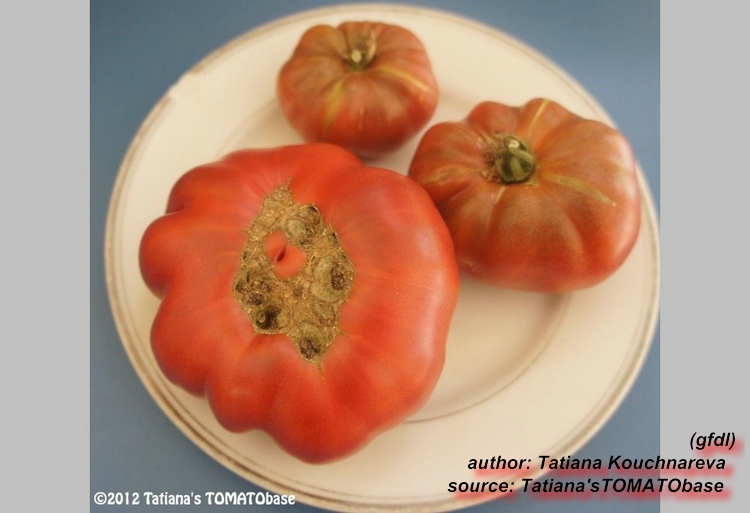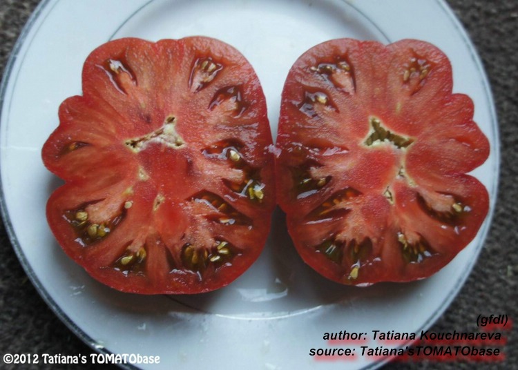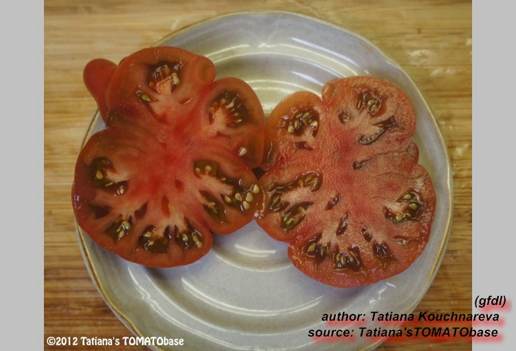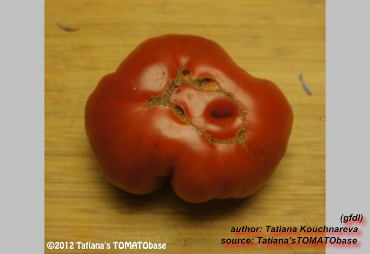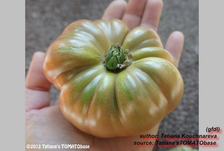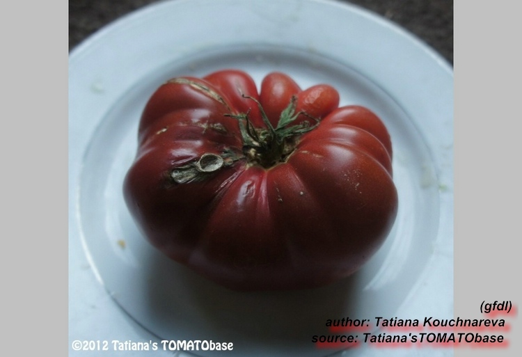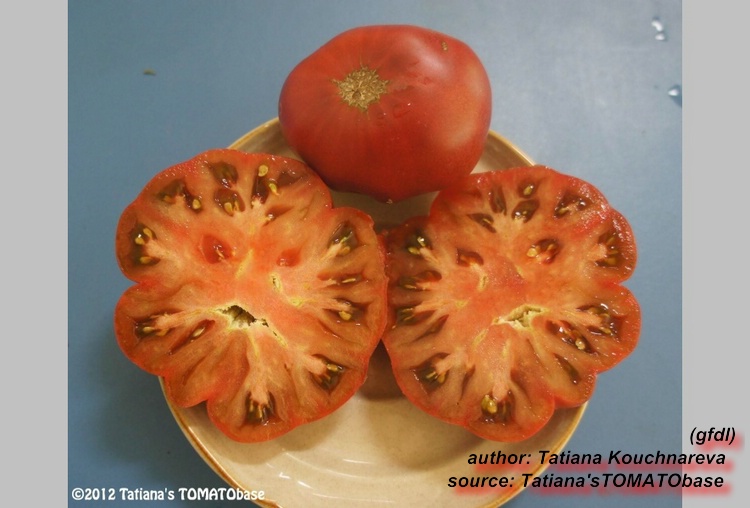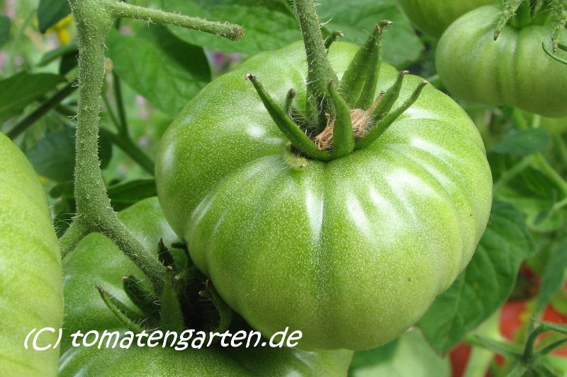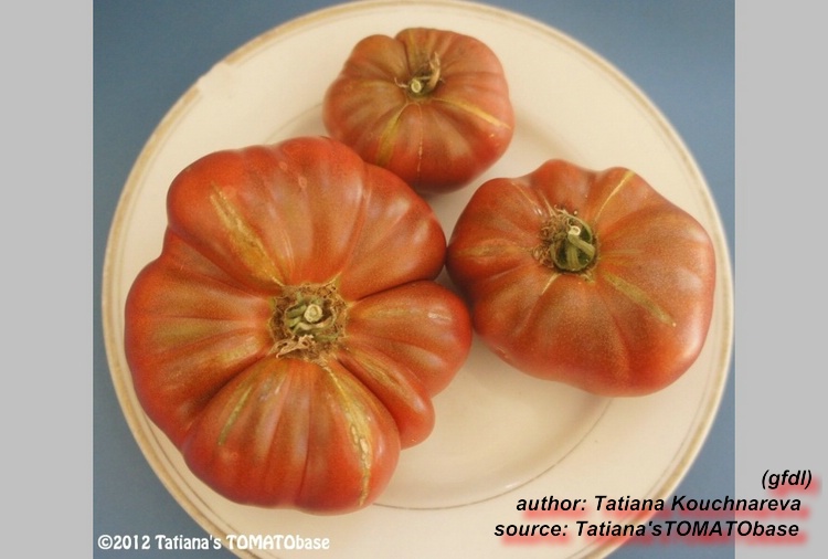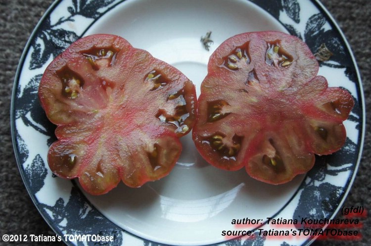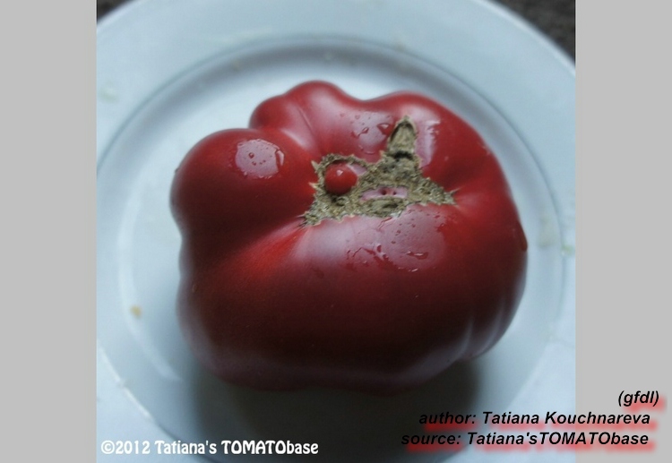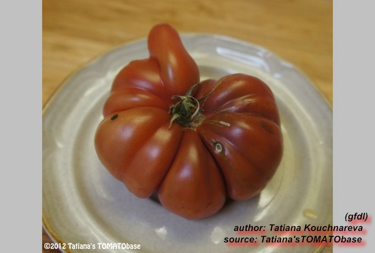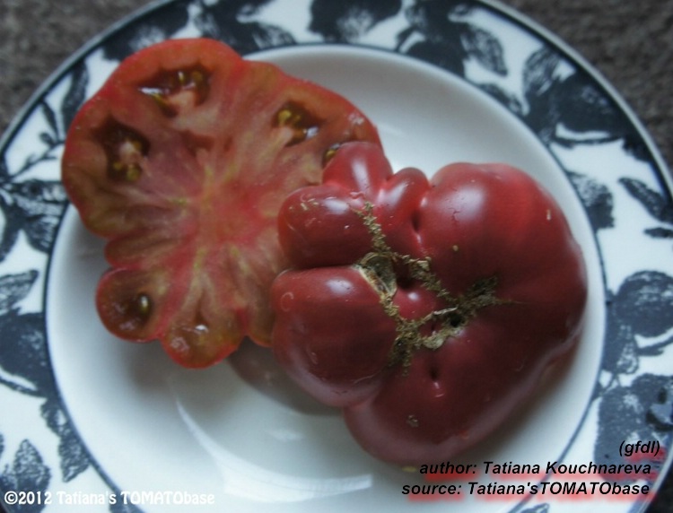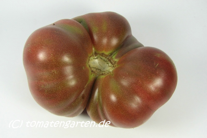 habe 2009 mehrere Pflanzen dieser Sorte an verschiedenen Stellen angebaut. Bilder und Beschreibung stimmen gut überein mit den Einträgen im Tomatenatlas vom 3.9.09 - nur als süß würde ich den geschmack nicht bezeichnen. Die Sorte ist oft an der Spitze stark vernarbt, besonders bei Düngermangel, und sie ist wegen ihrer Form schlecht zu schälen. ich denke, ich werde sie nicht mehr anbauen. Die Sorte ähnelt sehr der 'Lila Calabash'.