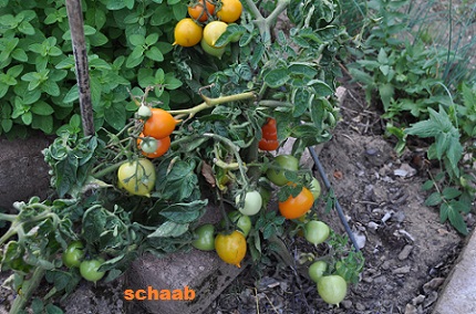 sehr kleine Pflanze (0,6 bis 0,8 m), eine Buschtomate