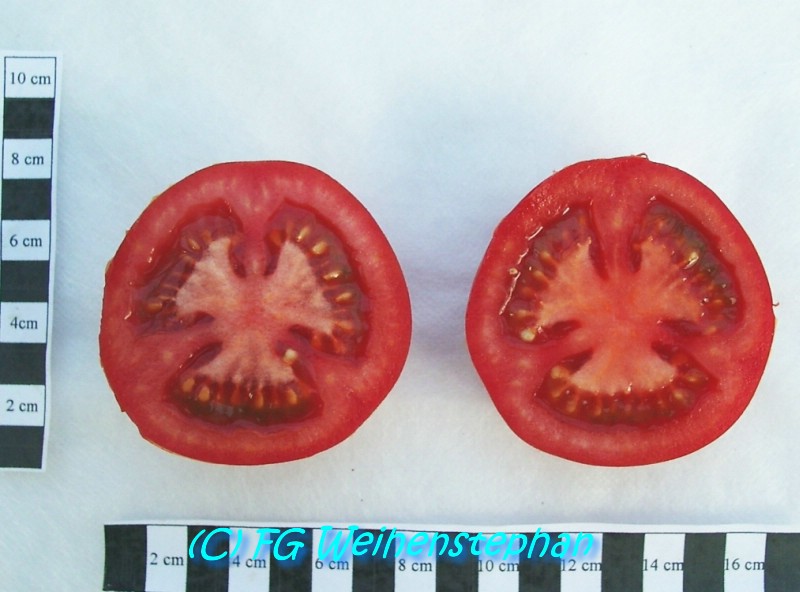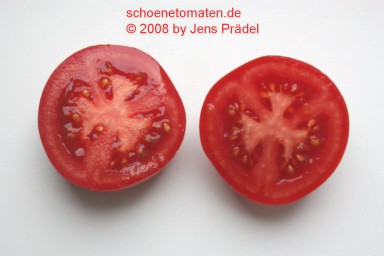große (ø 5 bis 7 cm und 100 bis 170 g), glatte, runde, feste, rote Früchte